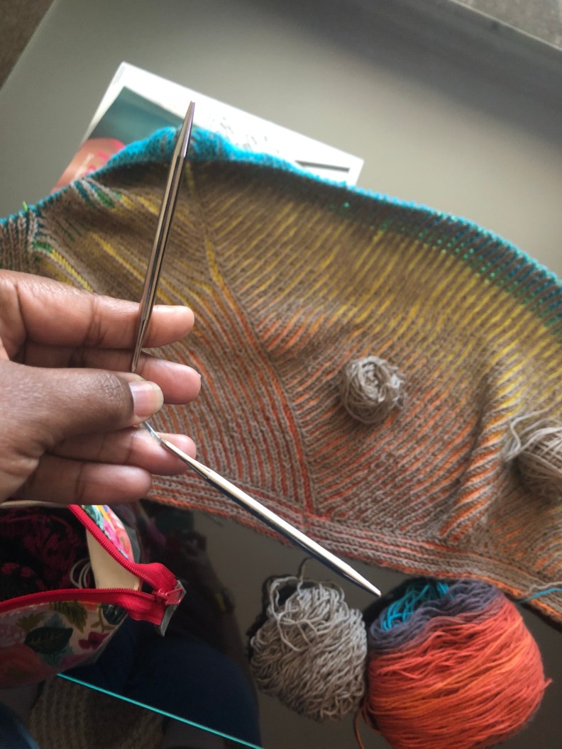 Only one needle made it to Las Vegas. I’m pretty sure they probably came out of my bag as I was looking for a crochet hook to fix a dropped stitch. And to make it even worse…that one needle didn’t even make it back from Vegas! I lost it somewhere in our hotel suite (we stayed at the Venetian and it was absolutely beautiful). I found one pair left on Amazon and ordered them and they sent me size 3’s by mistake! Clearly I’m not meant to have these.