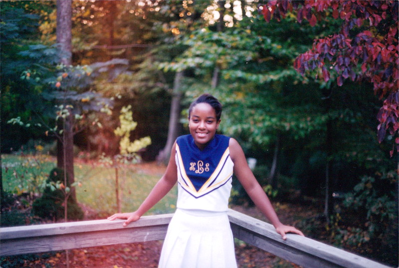 Back in the 1990’s I was a high school cheerleader, on a Varsity squad that won a district championship. I had a letter jacket and everything. Well, for some reason, 17 year old Dana bought a HUGE varsity jacket because that’s what was in style back then and 42 year old Dana can totally fit her jacket today. So of course I had to take a photo to compare the two.